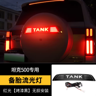 tank 500 single-color flowing spare tire light strip – silver/black (dynamic red light on start/red flash light on brake)